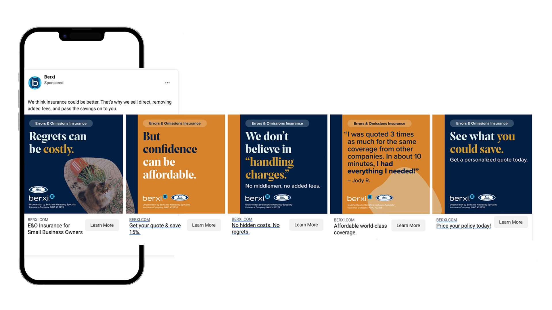 Challenge: In the increasingly competitive and fragmented professional and small business insurance market, Berxi needed to do more than just stand out—it had to address underperforming segments while growing new ones through the launch of new products. With insurance decisions often driven by fear and uncertainty, getting Berxi on the radar of potential customers was crucial.